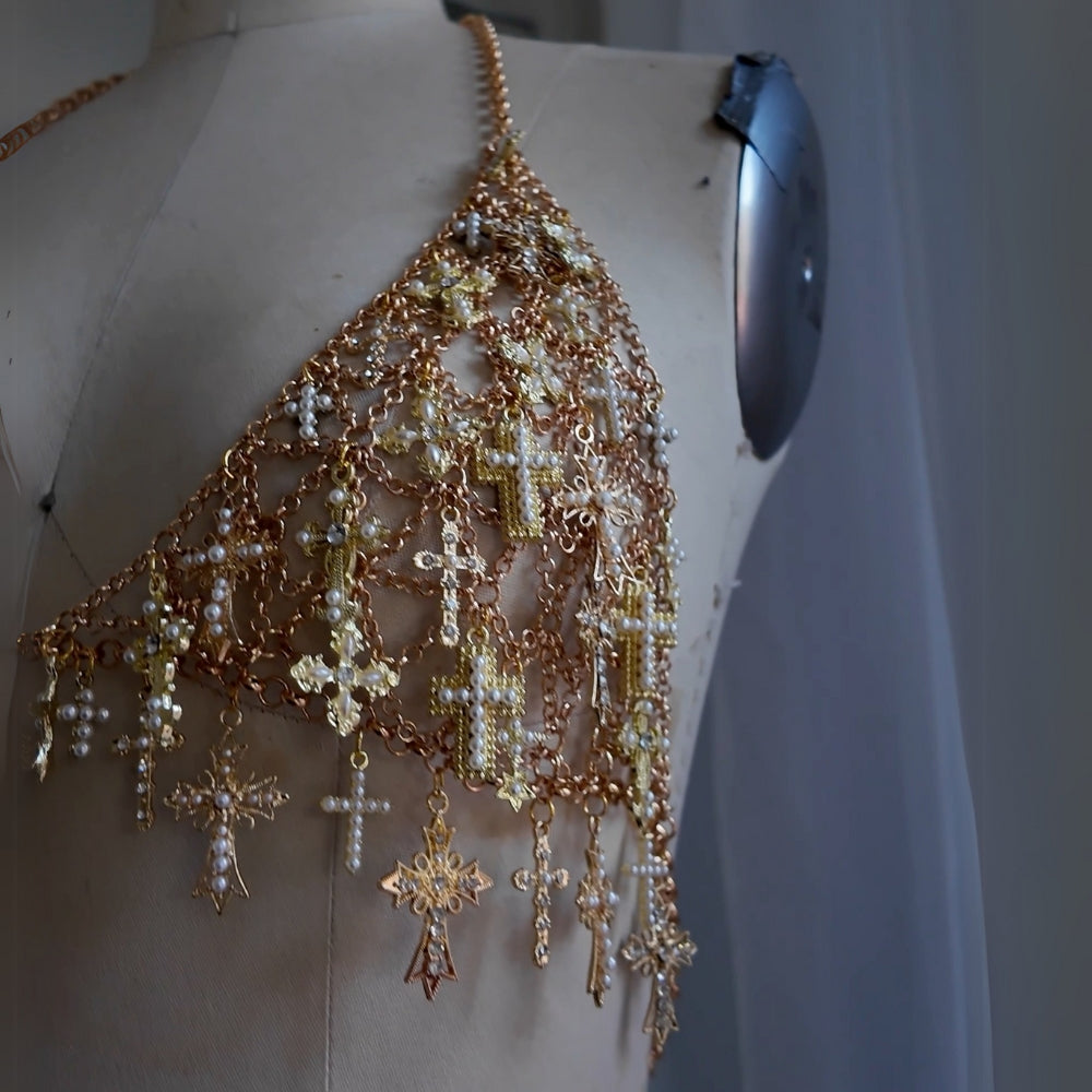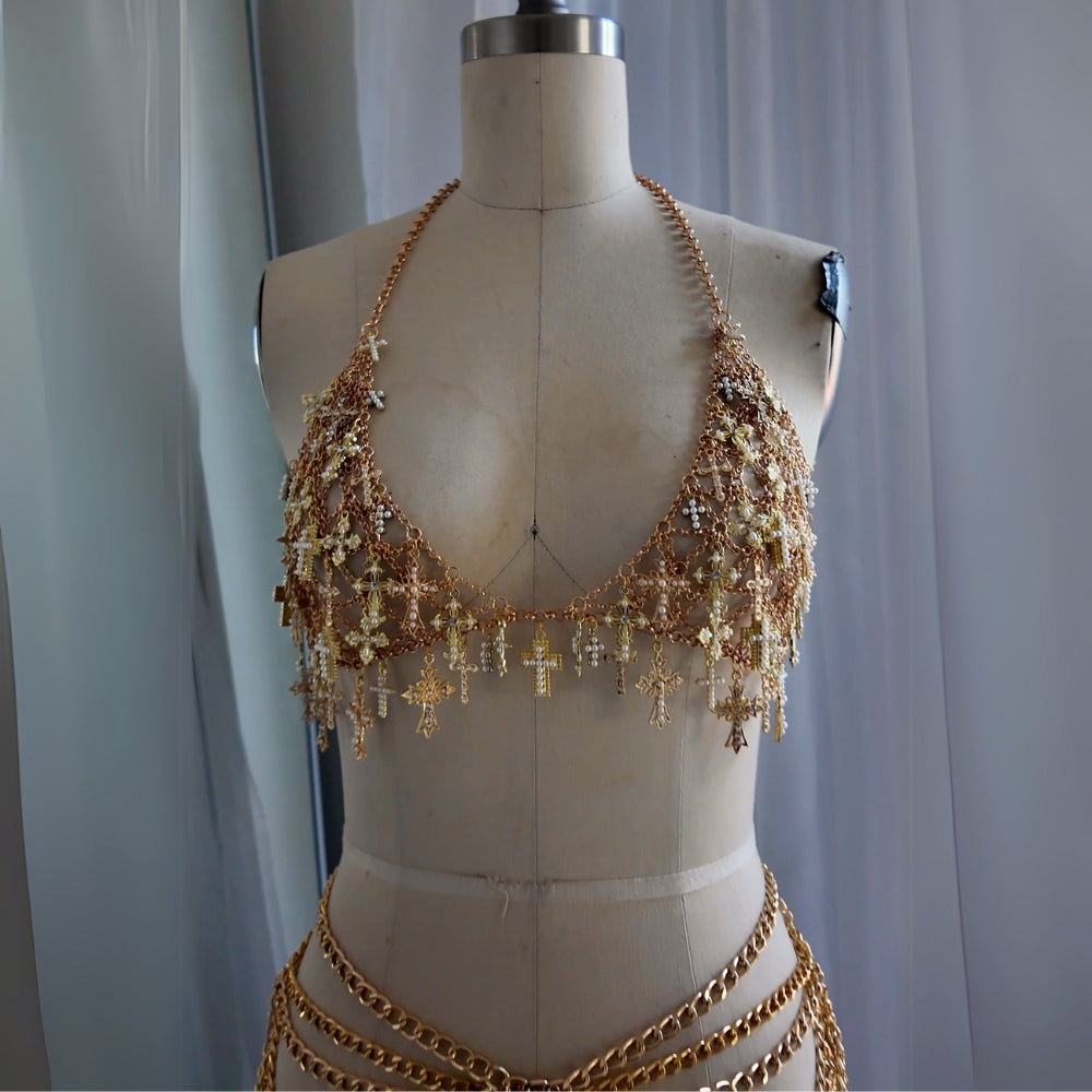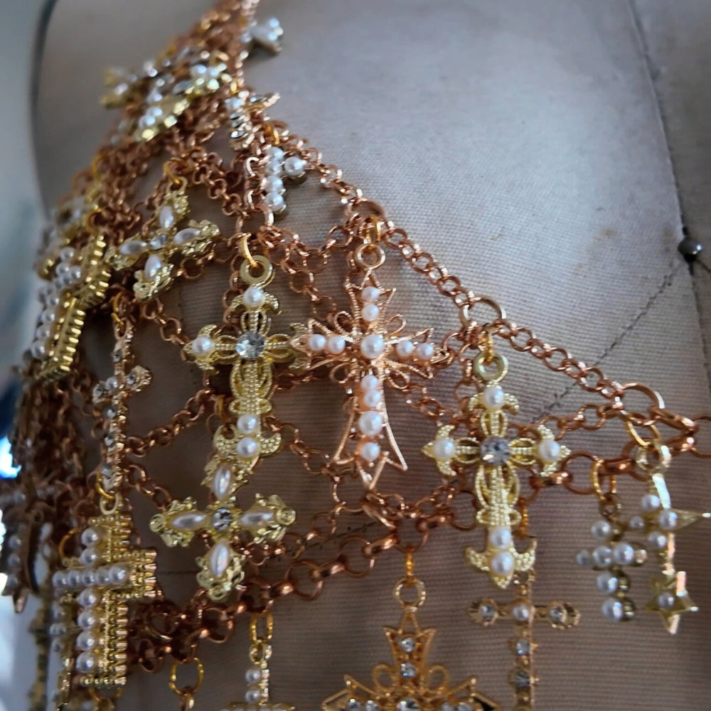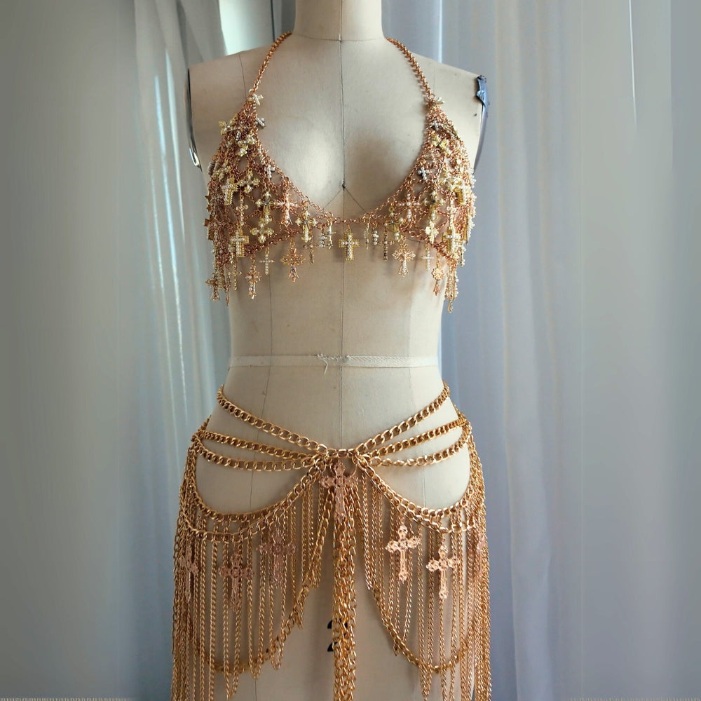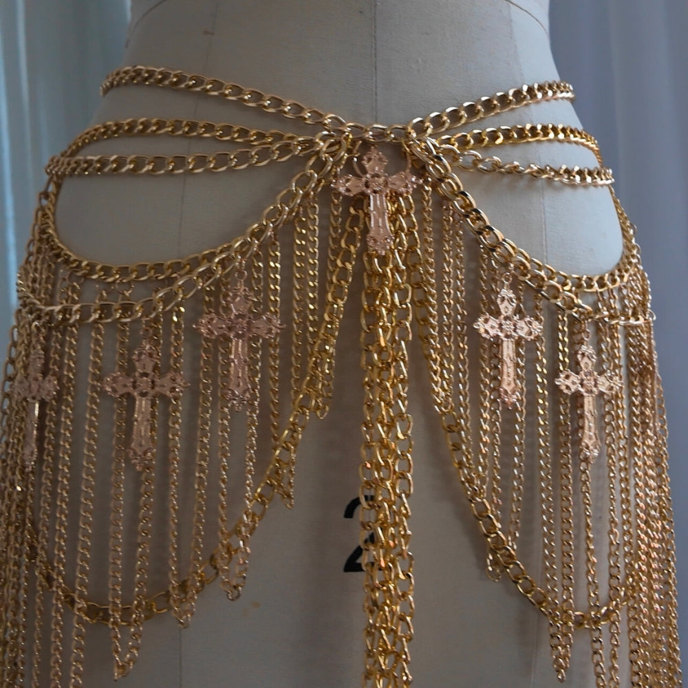Turn heads with our luxury gold body chain set – the ultimate statement jewelry for festivals, raves, and high-fashion looks. Inspired by Chrome Hearts, this handcrafted layered chain piece is perfect for Coachella, EDC, and beachwear. Limited edition – shop now before it's gone!