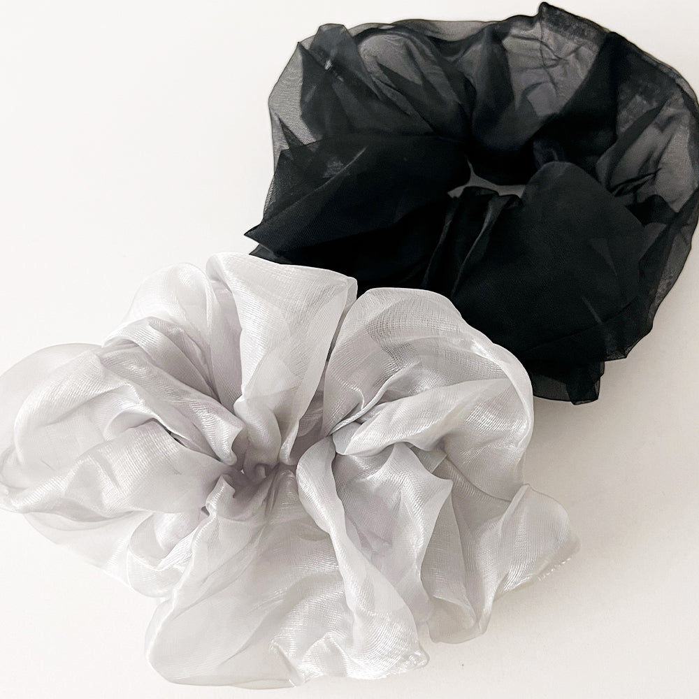 Spoil your hair with some beautiful sheer shiny organza scrunchies.